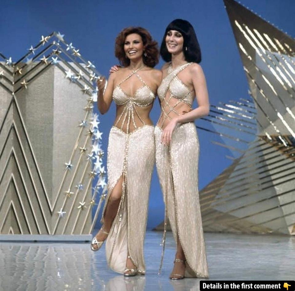 There are moments in history that capture more than just beauty—they capture the essence of cultural icons who defined generations. This stunning image of two women, adorned in dazzling gowns, brings together Raquel Welch and Cher—two legendary figures who not only shaped the entertainment industry but left an indelible mark on fashion, music, and film. Can you guess the stories behind these extraordinary women?